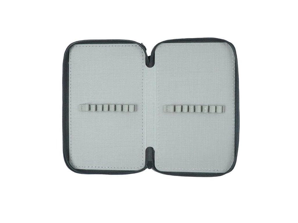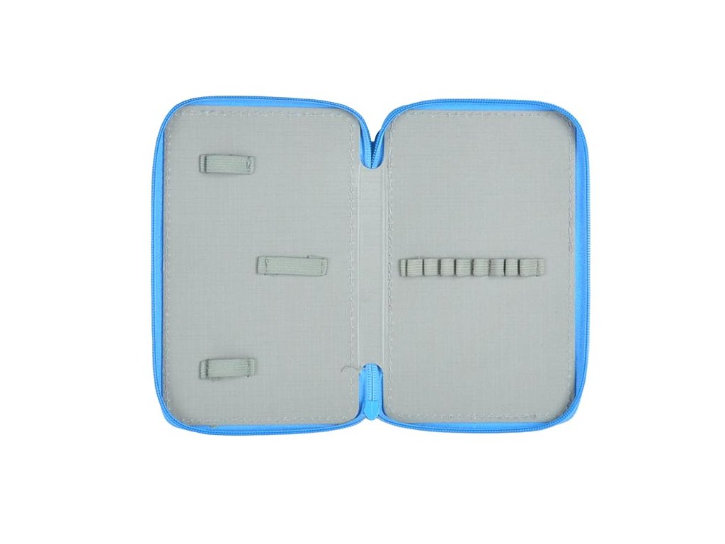 Školní dvoupatrový nevybavený penál. Penál obsahuje 24 poutek na psací potřeby a 3 větší např. na pravítko, ořezávátko, gumu nebo nůžky. Velice lehce se uzavírá díky velkému zipu a je z kvalitních a odolných materiálů. Bezesporu je nezbytnou součástí vybavení každého školáka.- není vybavený