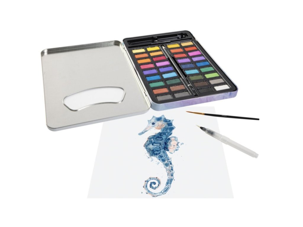 Akvarelové barvy v kovovém boxu 36 ks