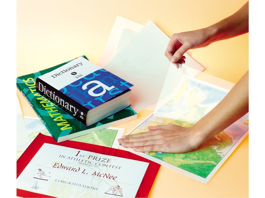 Řešení pro krytí a ochranu knih, složek, map, karet, obrázků atd. Čtvercová mřížka vytištěná na zadní straně krytu pro větší přesnost při manipulaci a řezání na požadovanou velikost. Skvělá kvalita: průhledný polypropylen, který nežloutne a je vysoce odolný proti poškrábání i kapkám vody. Snadná a rychlá aplikace: Nepermanentní lepidlo pomáhá během prvních 2 minut fólii odlepit a přemístit, následně permanentně kryje povrch knihy.permanentní ochrana povrchu knih a obrázků