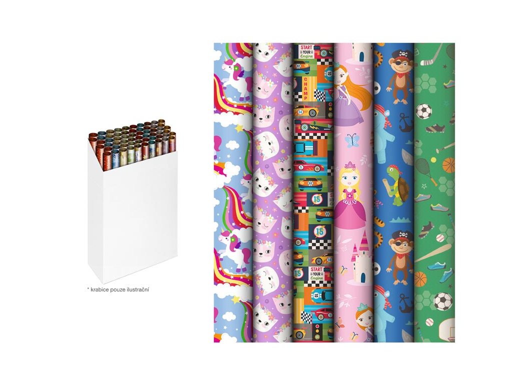 Tento dětský balicí papír v roli nabízí široký výběr vzorů, od roztomilých kočiček a duhových jednorožců přes princezny a piráty až po rychlá auta nebo sportovní motivy. Kvalitní pevný papír se snadno balí a netrhá, takže bez problémů zabalíte i větší dárky. Syté barvy a hravé obrázky promění každý dárek v originální překvapení, které potěší kluky i holky při narozeninách, svátcích nebo jiných oslavách.Gramáž: 55 g