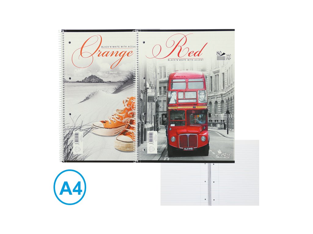 - college blok z bezdřevého papíru- spirála na delší straně