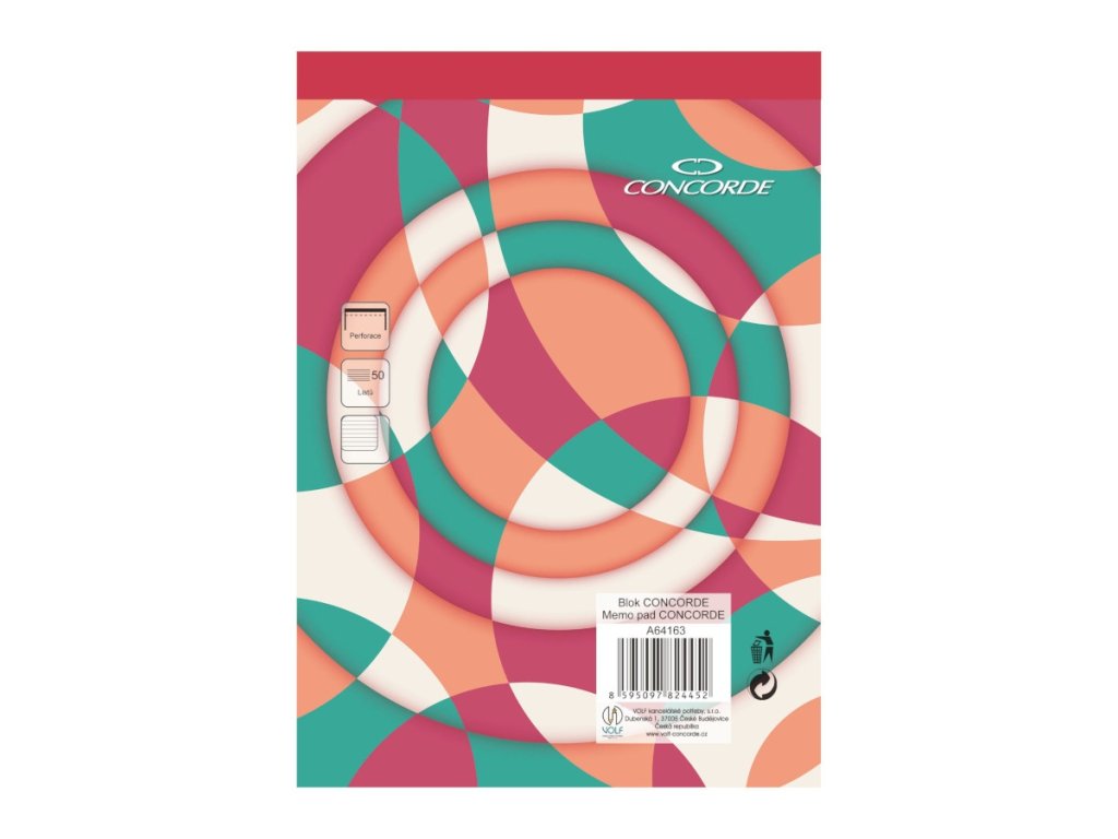 Lepený blok s perforací ve formátu A5, linkovaný. Obsahuje 50 listů bezdřevého bílého papíru o gramáži 55 g/m2, se šířkou linky 8 mm. Má atraktivní design a červený hřbet, který označuje linkovaný blok.Doplňkové parametry