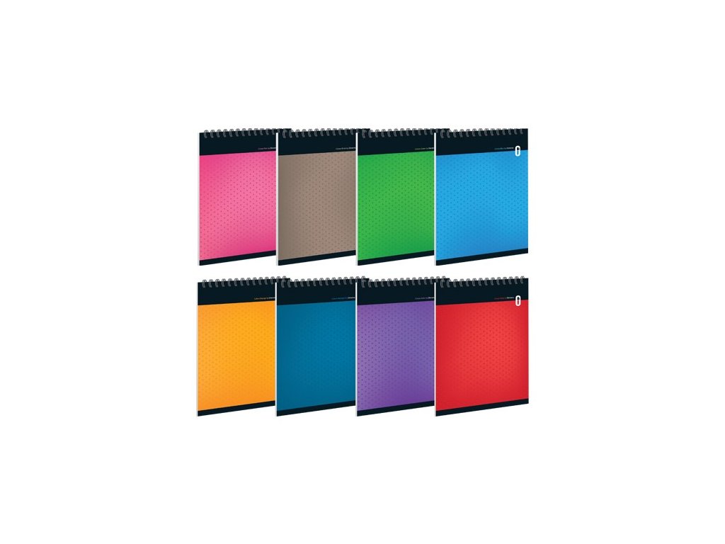 Stylový spirálový blok s atraktivní obálkou vhodná do kanceláře, do školy i pro soukromé sbírání zážitků.Pevná a odolná obálka vyrobená z tvrdého kartonu je potištěna různými barvami, potažena laminem a jednotlivé detaily UV lakem.