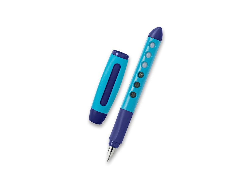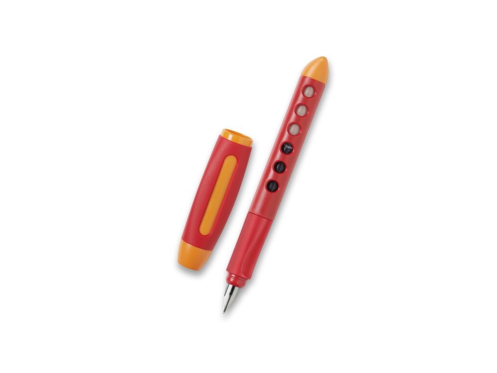 speciální tvar víčka a konec pera zamezuje kutálení po lavici