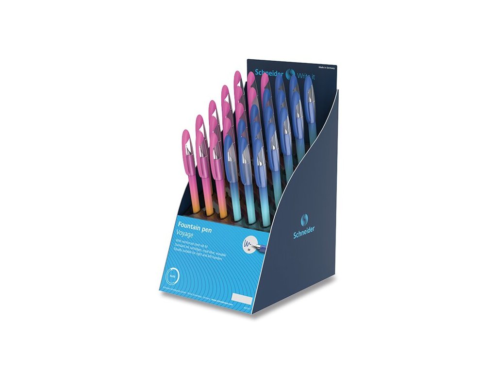 Bombičkové pero Schneider Voyage s atraktivním motivem. Kvalitní ocelový hrot M. Ve stojánku je mix 2 barev. Varianta produktu je dodávána podle aktuální skladové dostupnosti.Máte-li preferovanou barvu nebo vzor, uveďte ji prosím do poznámky k objednávce. Uvedená cena je za 1 kus.