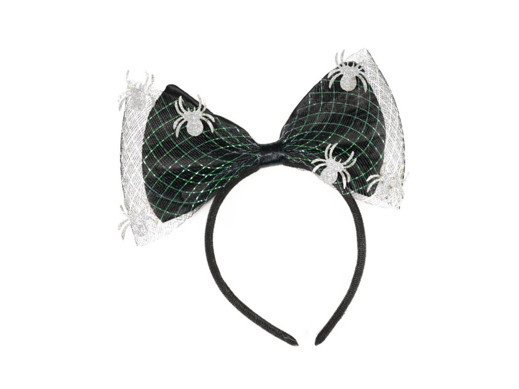 Úžasná čelenka s velkou mašlí a pavoučky je senzačním doplňkem na párty či karneval. Ideální do vlasů při oslavě čarodějnic nebo halloweenu.Rozměry 220×230×40 mm (balení)