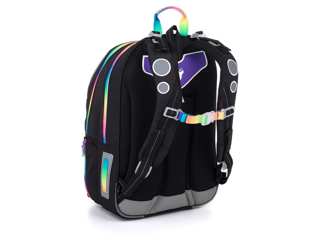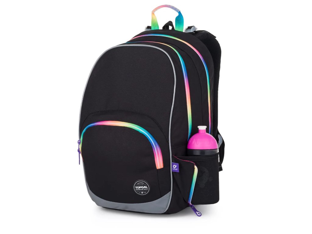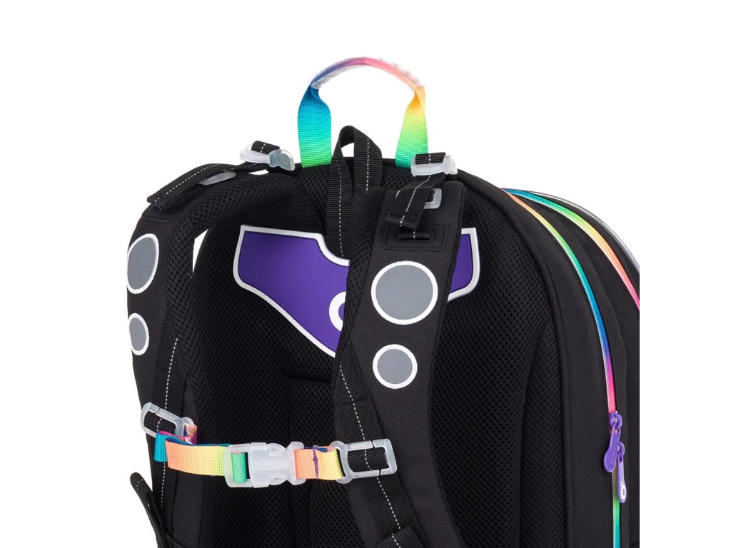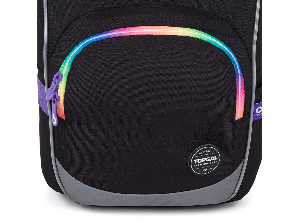 Černý dvoukomorový batoh dobře padne slečnám od 125 cm. Tuto černou klasiku oživí speciální barevné zipy s fialovými taháčky. Kdo se nebojí zaujmout?Dvoukomorový model KIMI jsme letos opravdu vymazlili – černou plochu jsme roztříštili barevnými zipy. A ano, na trhu takových batohů opravdu moc není. ??