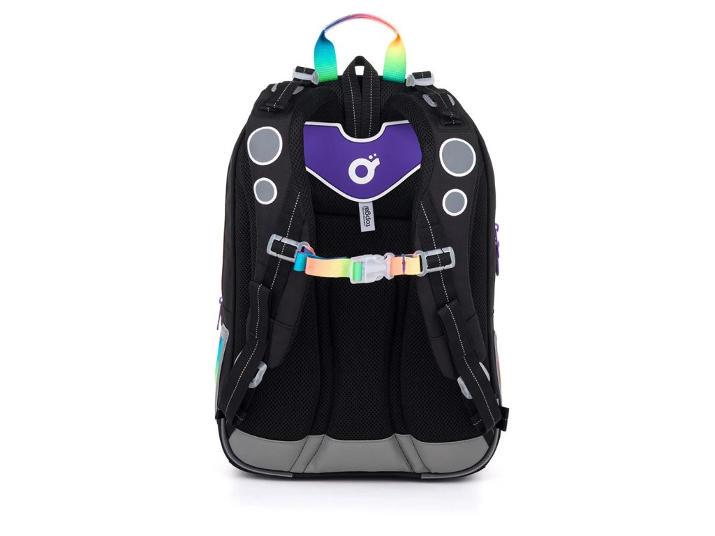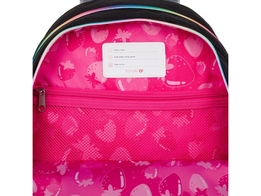 Zadní komora je nejobjemnější, proto se do ní vejde všechno těžké učení. Přední komora je malinko menší a skrývá síťovou kapsu na doklady i jmenovku. Do malé přední kapsy se vejde penál PENN 25010 ve stejném designu nebo krabička se svačinou.