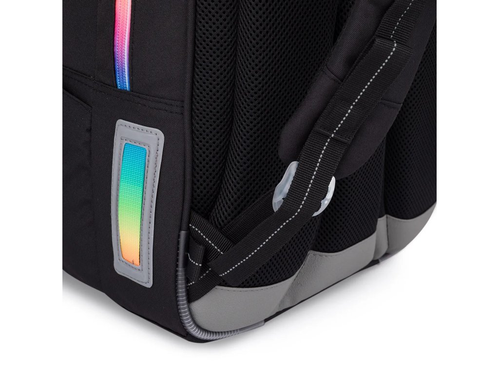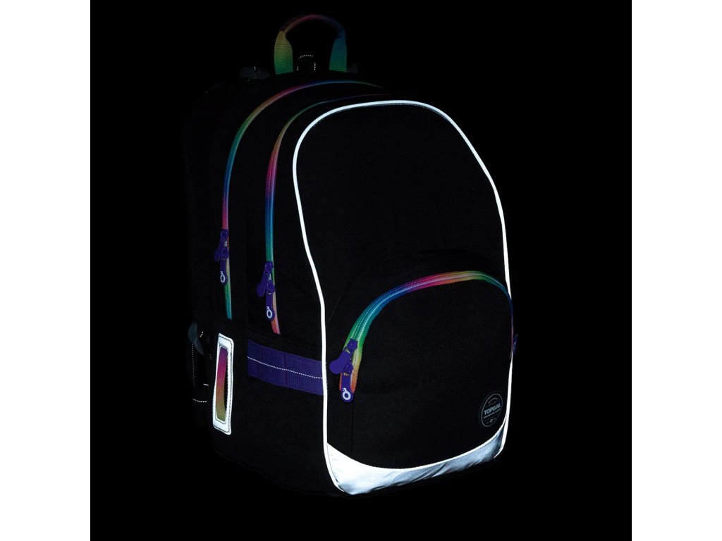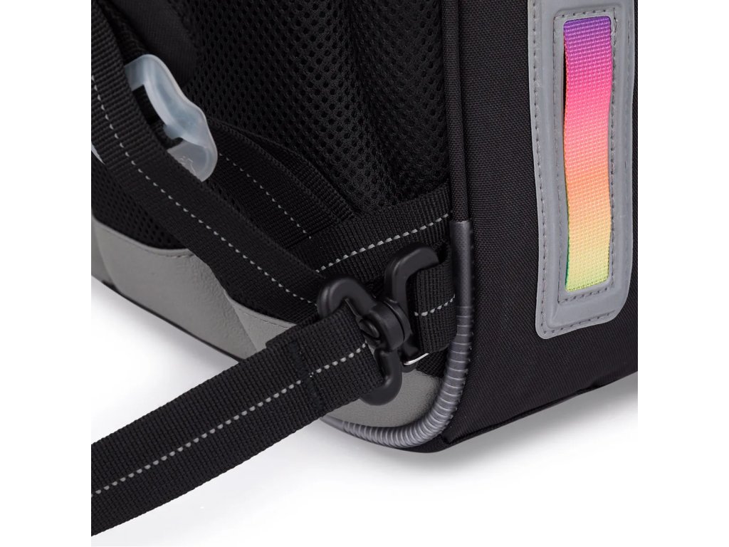reflexní prvky: na čele a bocích batohu, na ramenních popruzích