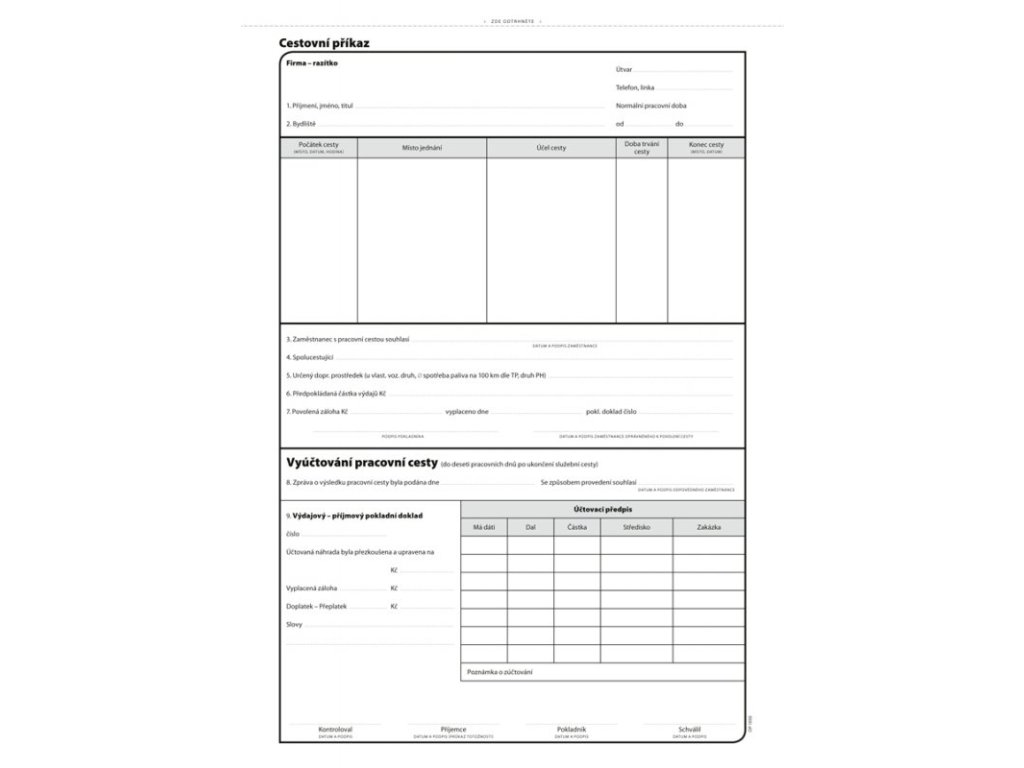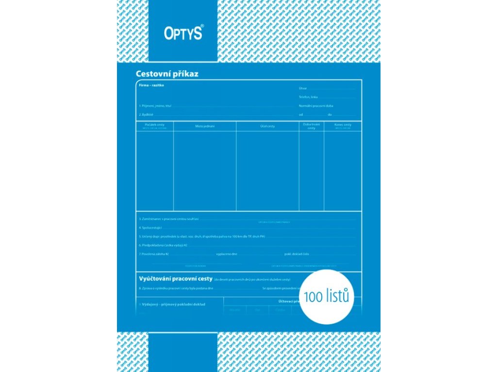 Cestovní příkaz A4 100 listů