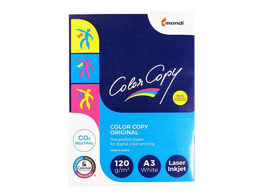 COLOR COPY Original je speciální bílý satinovaný papír poskytující uživateli dokonalou kvalitu při tisku v laserových zařízeních. Jde o speciální oboustranně upravený papír určený především pro tisk všech reprezentativních materiálů - například katalogů, kalendářů či vizitek atd. Brilantní barvy a ostrost Vás nenechají na pochybách. Papír je dostupný v gramážích 80 - 400 g ve formátech A4, A3, A3+ a SRA3.DŮLEŽITÉ: