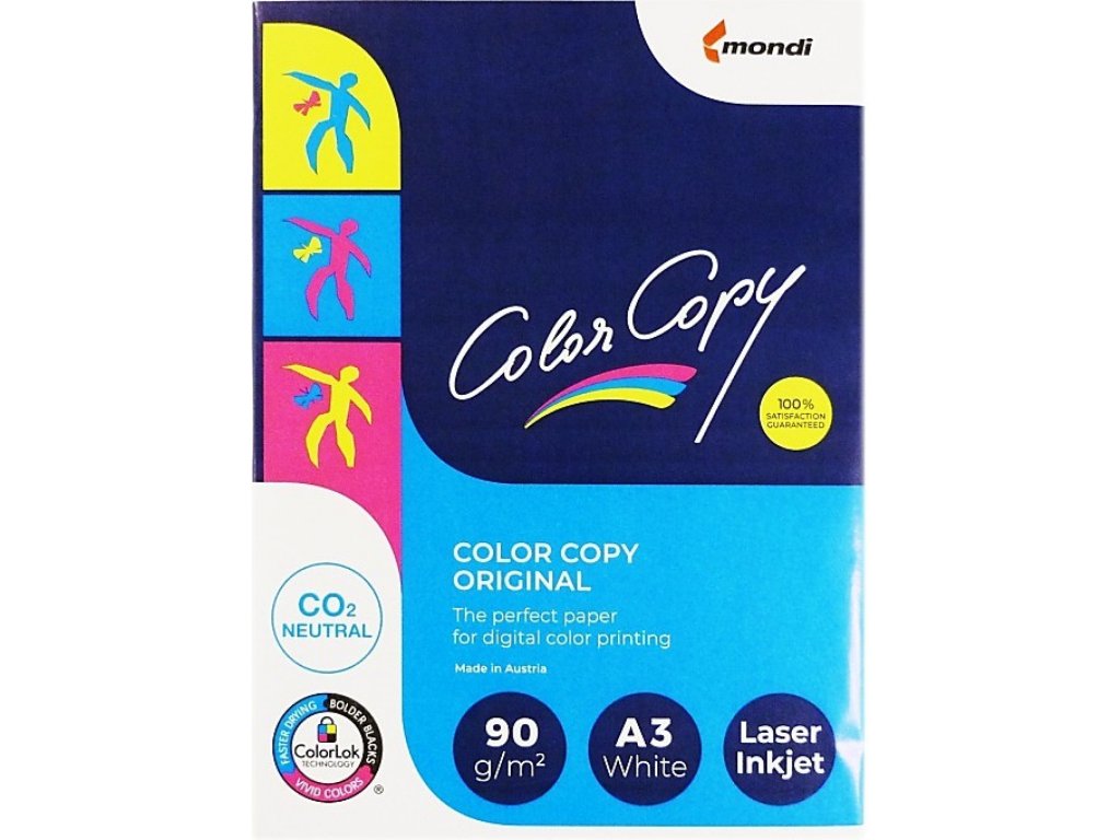 COLOR COPY Original je speciální bílý satinovaný papír poskytující uživateli dokonalou kvalitu při tisku v laserových zařízeních. Jde o speciální oboustranně upravený papír určený především pro tisk všech reprezentativních materiálů - například katalogů, kalendářů či vizitek atd. Brilantní barvy a ostrost Vás nenechají na pochybách. Papír je dostupný v gramážích 80 - 400 g ve formátech A4, A3, A3+ a SRA3.DŮLEŽITÉ: