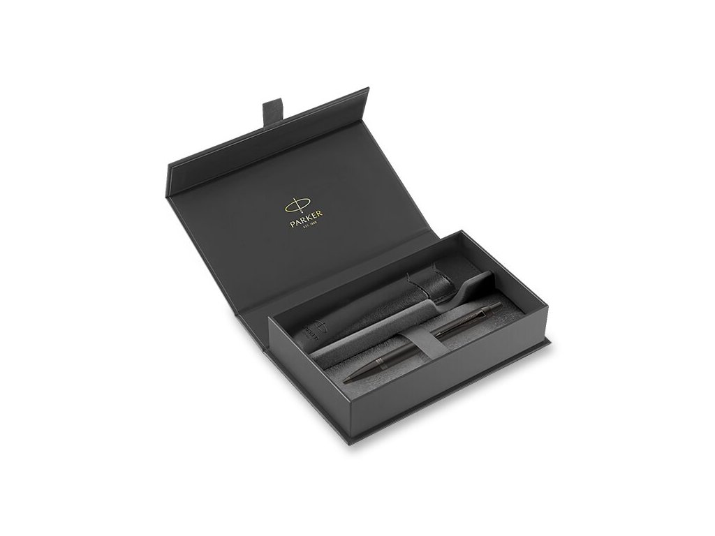 Dárková kazeta s kuličkovým perem Parker IM Achromatic Black BT s tělem pokrytým černým lakem, potaženým pomocí techniky PVD odolnou matně černou vrstvou. V kombinaci s doplňky potaženými pomocí techniky PVD odolnou matně černou vrstvou.Dárková kazeta obsahuje: