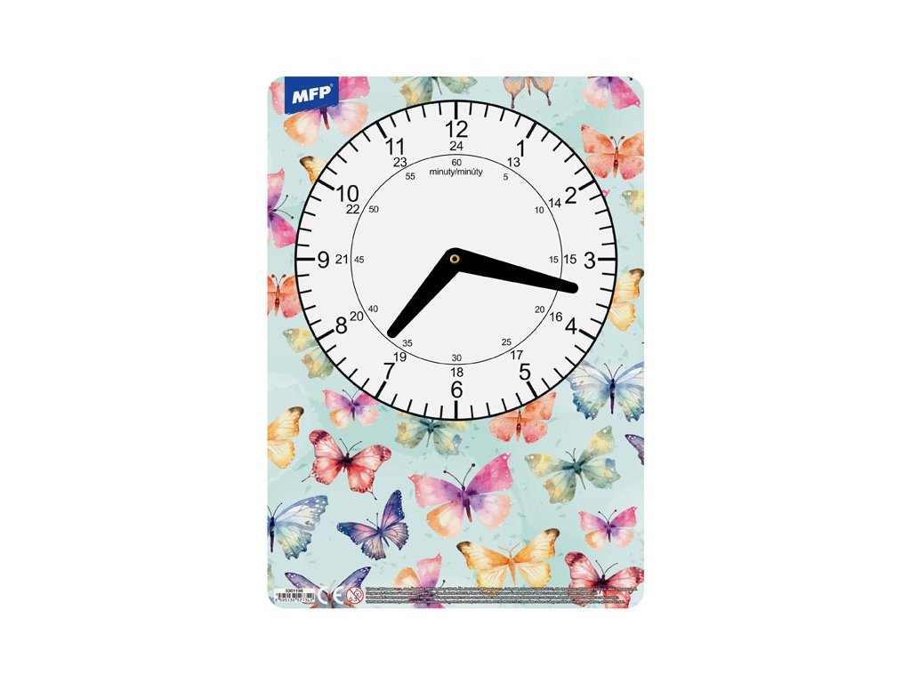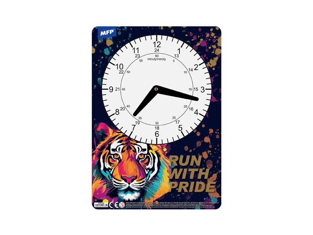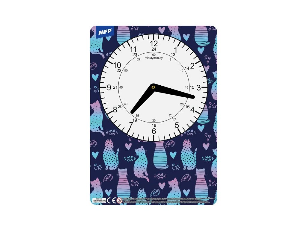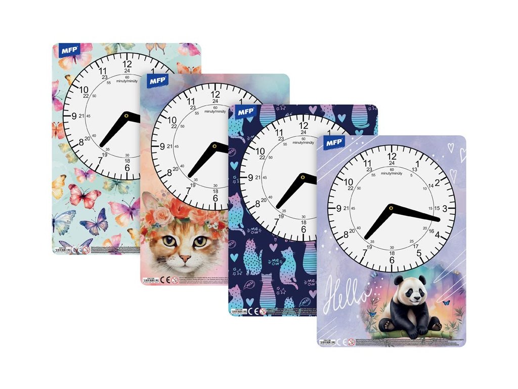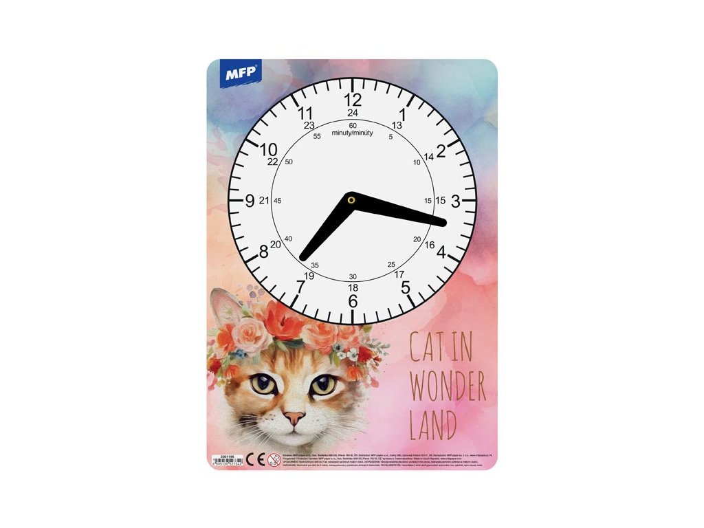 Dětské papírové hodiny v mixu dívčích motivů. Didaktická pomůcka, dobře využitelná k výuce času u dětí předškolního věku nebo u prvňáčků. Tyto cvičné hodiny nesmí chybět Vašemu dítěti při nástupu do první třídy základní školy.Motiv: pes( Čau - čau), liška, víly, kočky