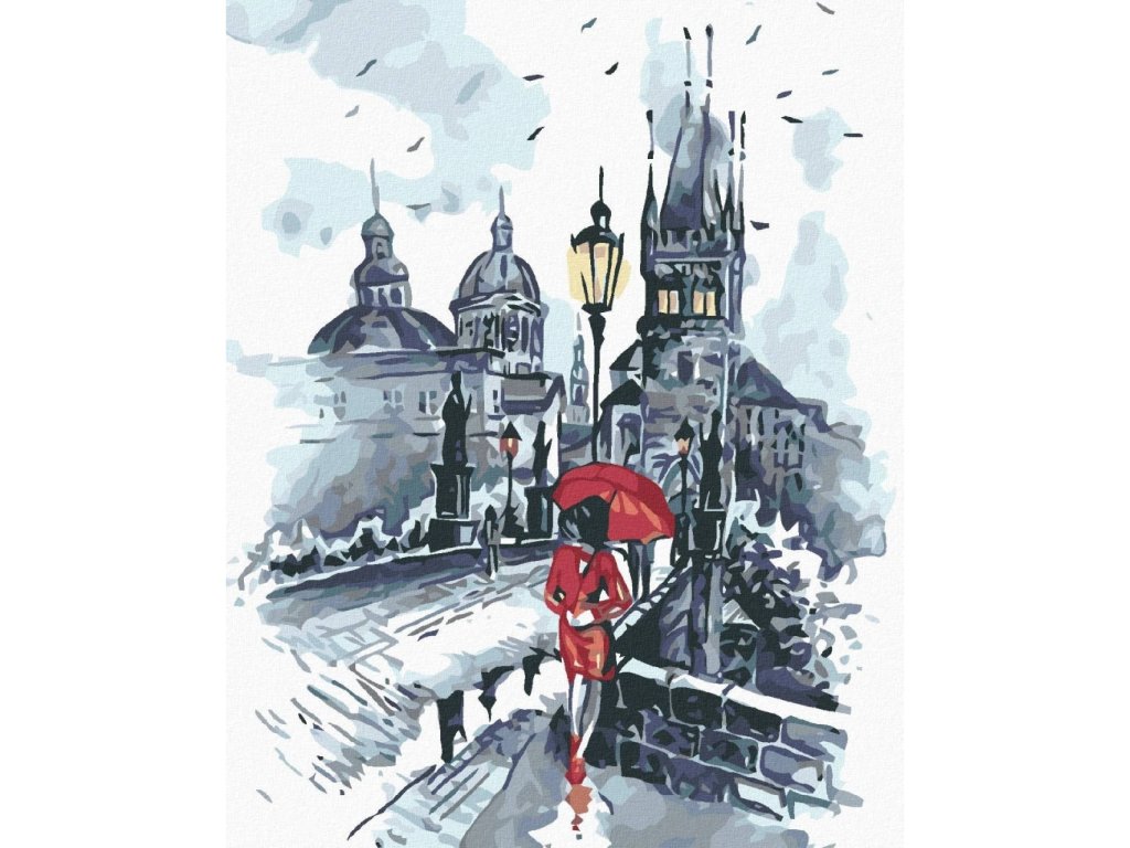 Diamantové malování vypnuté plátno s rámem 40 x 50 cm Žena s deštníkem na Karlově mostě
