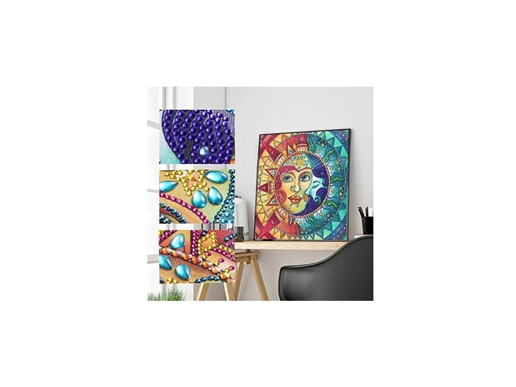 Postup: Obrázek je zakrytý ochrannou folii, kterou sundávejte vždy postupně, tak jak budete aplikovat kamínky. Při sundání celé folie najednou hrozí, že se ztratí viskozita lepidla a kamínky nebudou držet. Plátno obsahuje označení, která jsou umístěna i na sáčcích s kamínky. Podle označení, víte kam který kamínek patří. Nejprve si do hrotu tužky naberete vosk, díky kterému se kamínky snadno přichytí na pero. Kamínky perem aplikujete na obrázek. Hotový obraz vypadá kouzelně, lze zarámovat- rám není součástí balení.