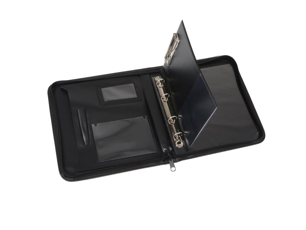 Uzavíratelná na zip, uvnitř kapsy na dokumenty a vizitky, úchytka na psací potřeby, jednodeska, 4kroužková mechanika D20Doplňkové parametry