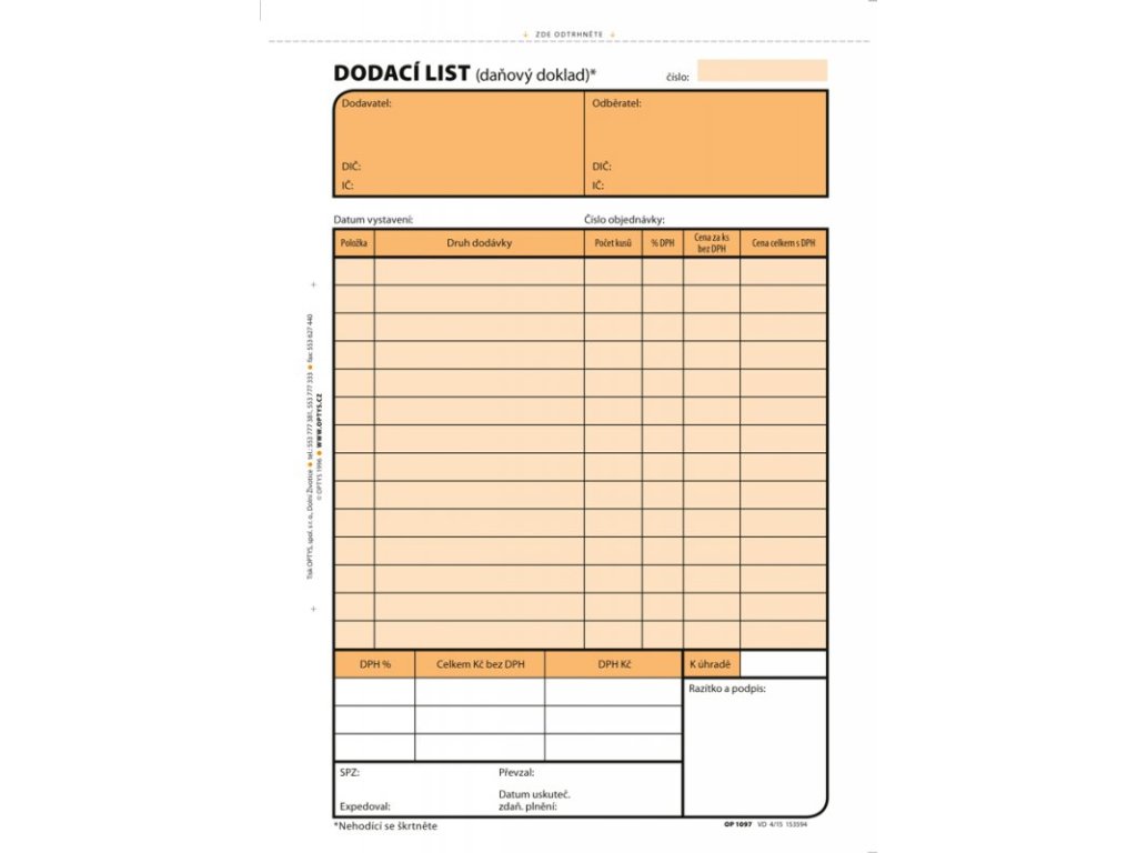 perforace v horní části tiskopisu