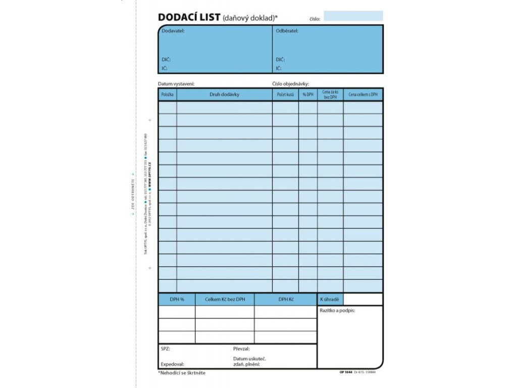 tiskopis splňuje všechny platné požadavky zákona o DPHnepropisovací