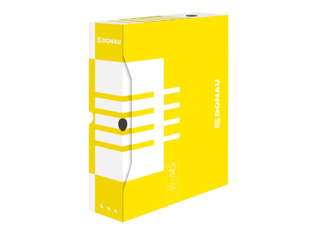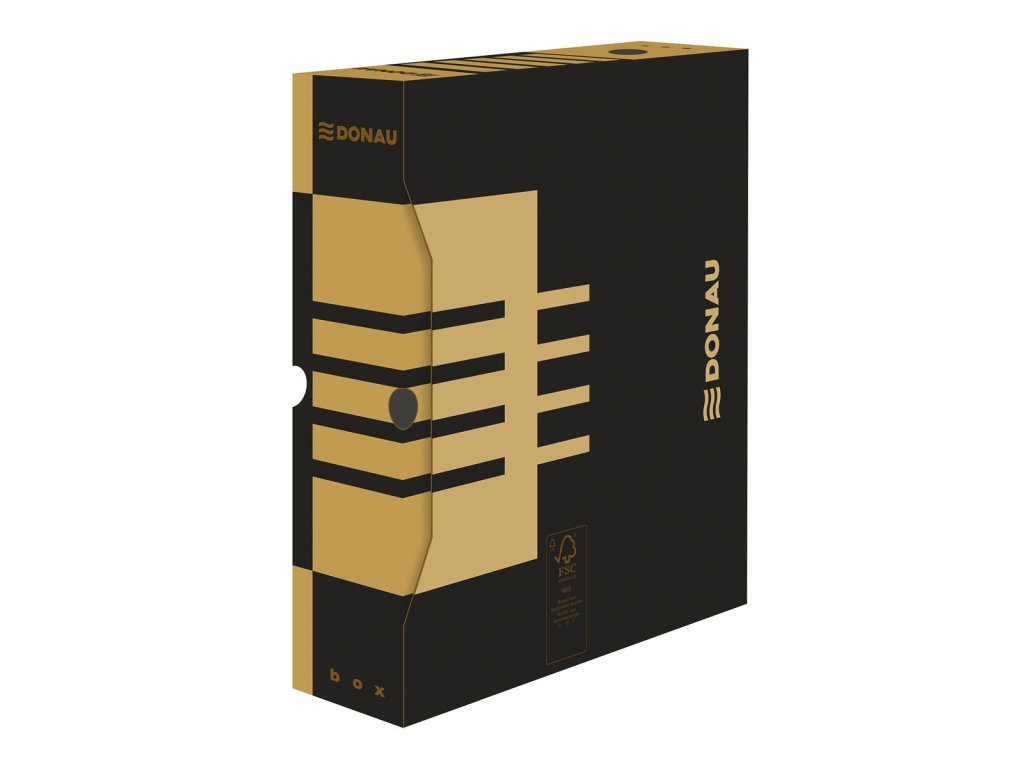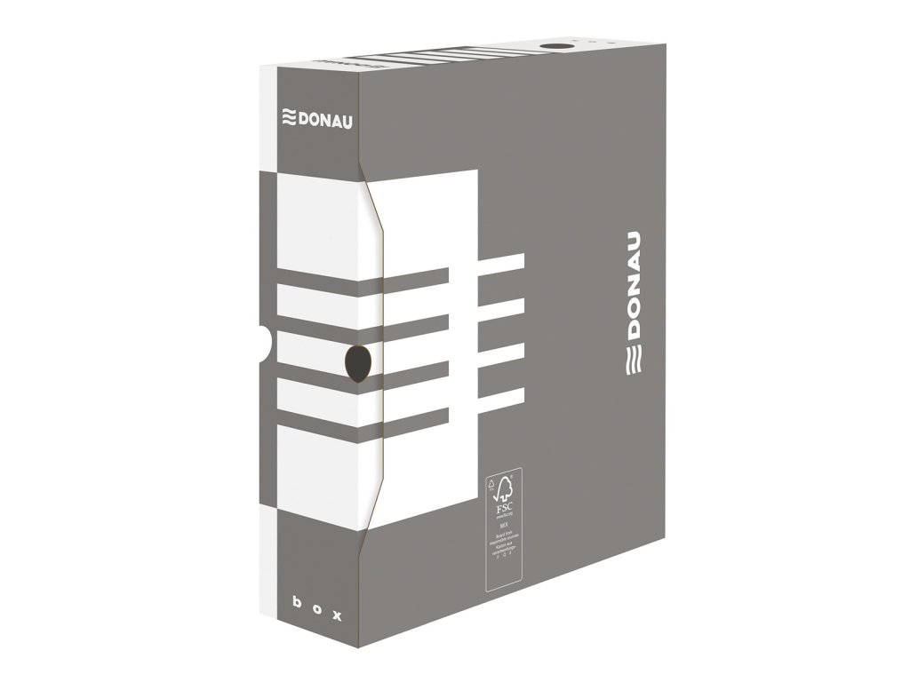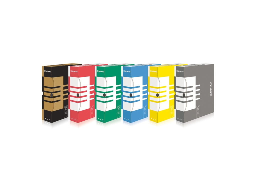 Standardní box pro uložení pákového nebo kroužkového pořadače. Lze skladovat rozloženě, snadné sestavení. Stabilní na kratké i delší straně. Pro snadnou manipulaci jsou k dispozici 2 otvory pro vyjmutí obsahu z boxu a 2 pro pohodlné vyjmutí boxu z úložné krabice. Možnost popisu na 5 plochách.pro formát A4