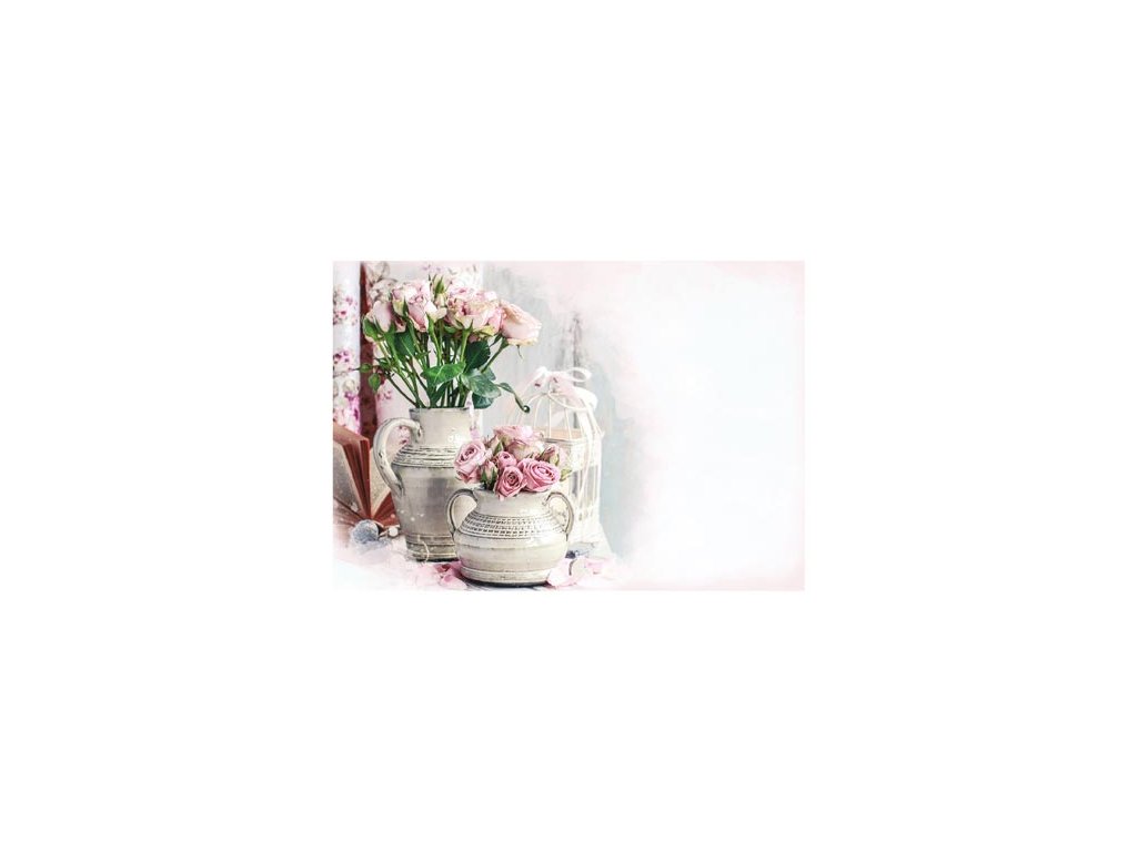 Když obyčejný papír nestačí!Elegantní dopisní souprava s jemným motivem růžových růží v rustikálních vázách vdechne každému vašemu dopisu kouzlo a osobitost.