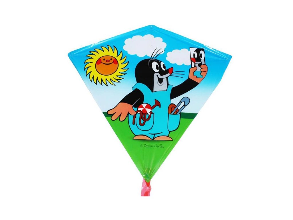 Dětský drak - Krteček v kalhotkách. Kdy jindy pouštět draky než na podzim! Že ještě žádného nemáte? Pořiďte si u nás z pestré škály létajících draků. Parádní létající drak se bude na obloze určitě moc dobře vyjímat. Tak hurá na drakiádu! Pojďte se společně vyřádit při pouštění draků, třeba se zajímavými pestrými motivy.JAK SLOŽIT DRAKA: