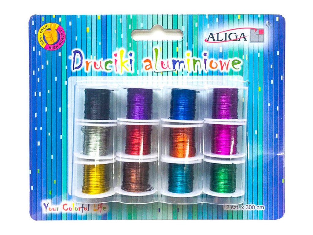 Balení obsahuje 12 barev hliníkových drátků na špulce. Každý drátek má 0,3 mm x 3 m.Doplňkové parametry