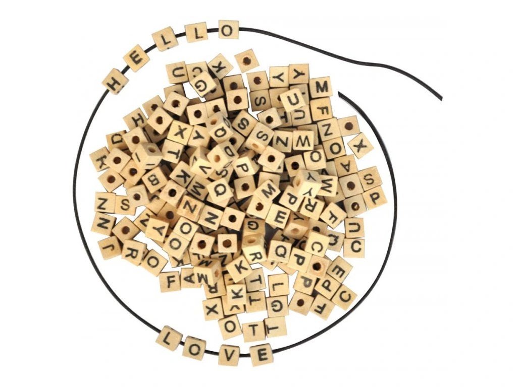 Dřevěné korálky ve tvaru kostiček s písmenky cca 300 ksDoplňkové parametry