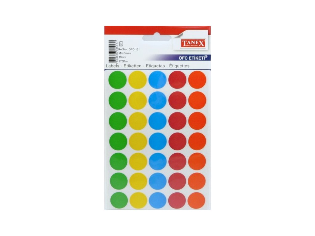 Etikety v sáčku - kulaté - barevný mix - 19 mm - OFC-131 - 175 ks - 85517.Etikety jsou baleny po 5 aršících v sáčku.