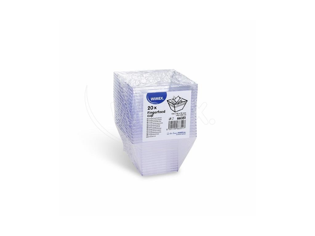 Fingerfood kelímek (PS) hranatý čirý 500 ml 110 x 110 x 70 mm [20 ks]Výška [cm]: 7