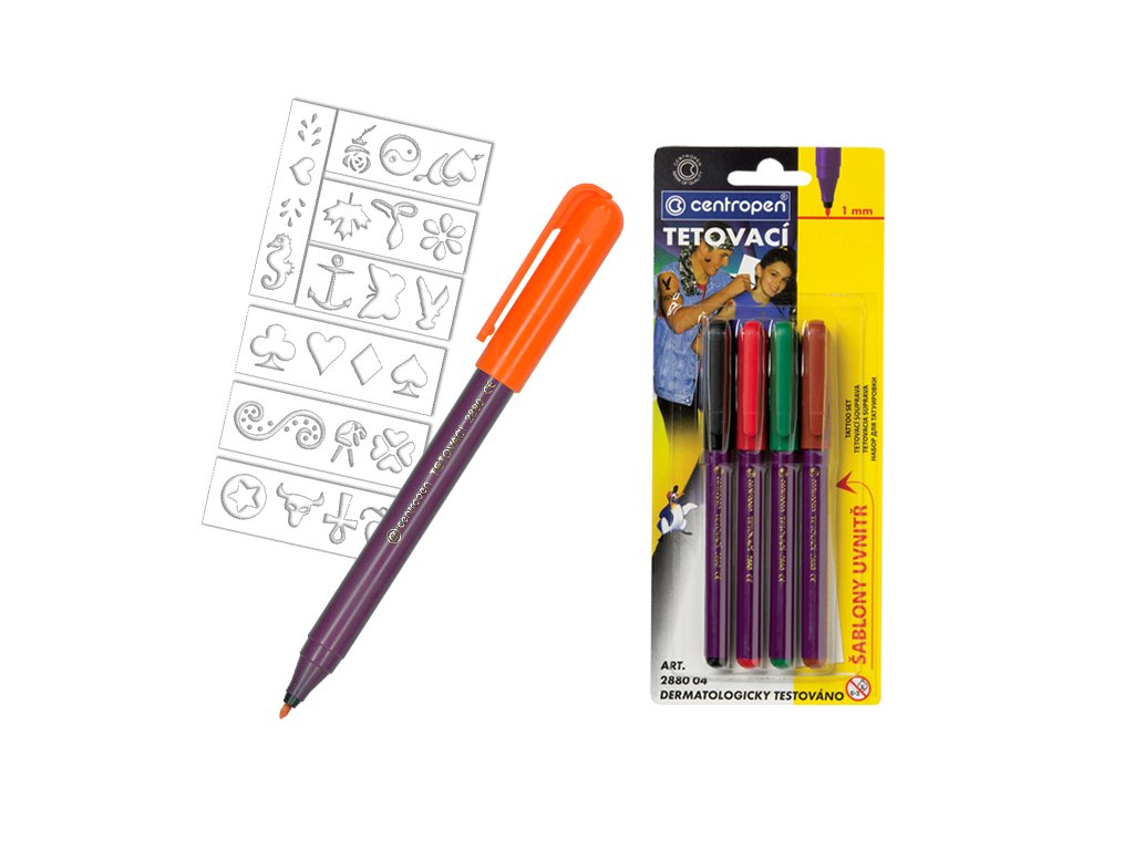 - sada tetovacích fixů na kůži- nový, bezbolestný a snadný způsob tetování pro děti a mládež