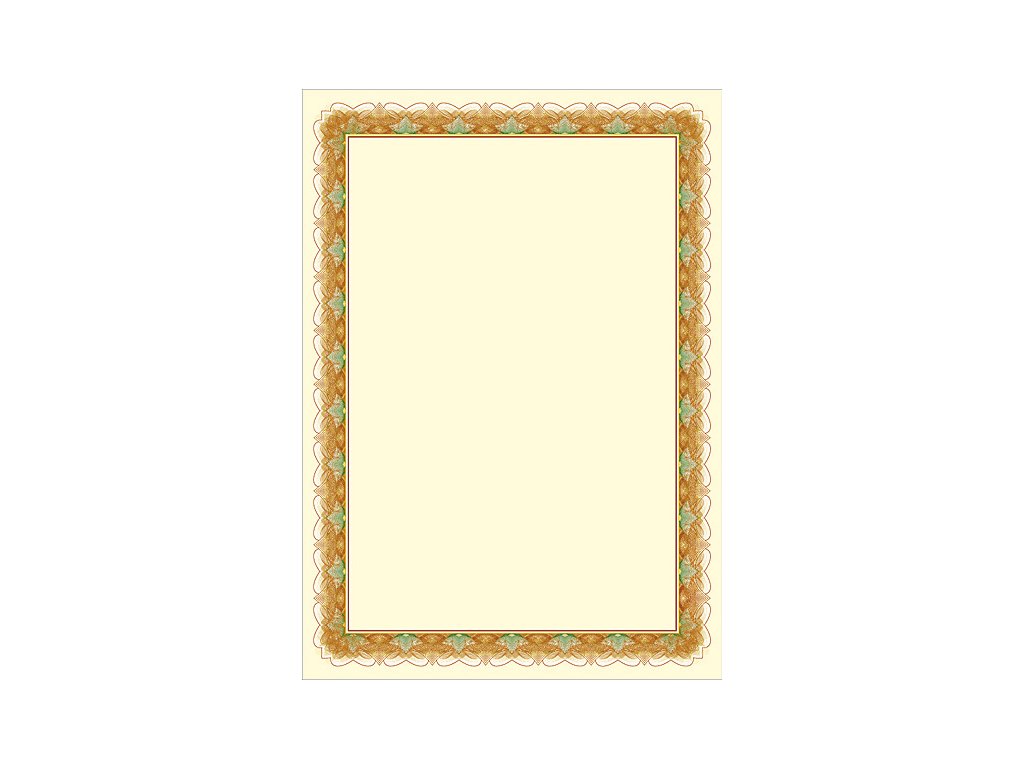 Diplom se zdobeným rámečkem vhodný pro certifikáty, pamětní listiny, vyznamenání apod. Gramáž 170 g. kvalitní papír se saténovým matným povrchem k různým příležitostemjednostranně předtištěný barevný vzor