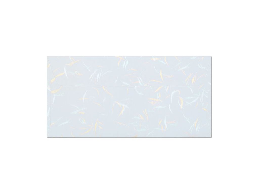 Obálka DL s hladkým bílým povrchem a motivem lesklých vlnek. obálka s hladkým povrchem a motivem lesklých vlneksamolepící rovná klopa