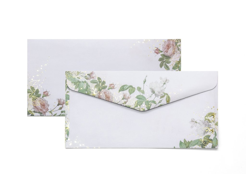 obálka s hladkým povrchem a květinovým motivemvýjimečná ozdobnými metalickými prvky