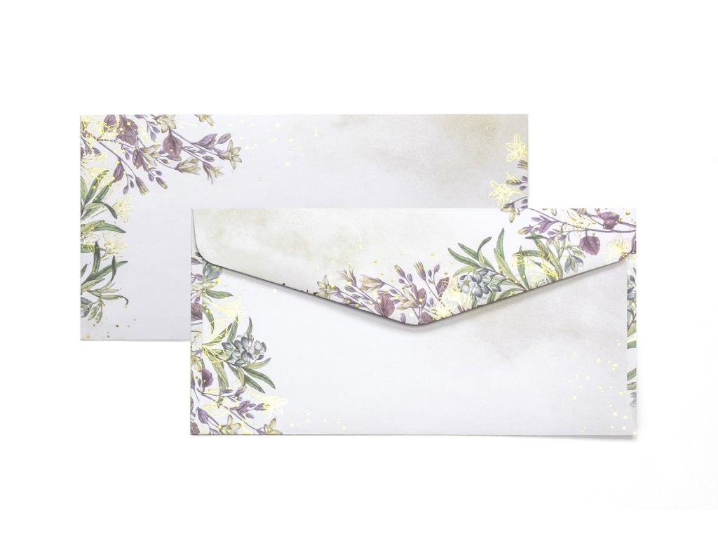 Obálka s hladkým povrchem a květinovým motivemvýjimečná ozdobnými metalickými prvky