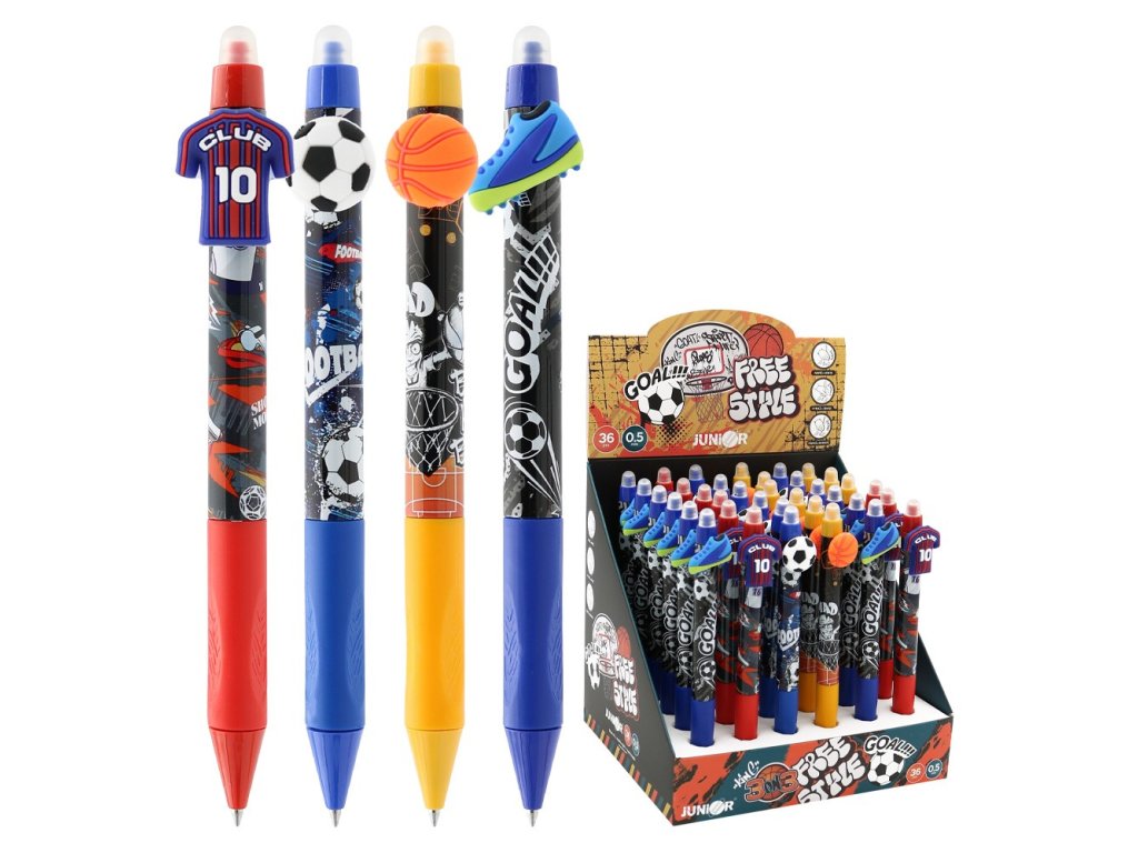 Gelové gumovací pero s fotbalovou 3D figurkou 0,5 mm modré