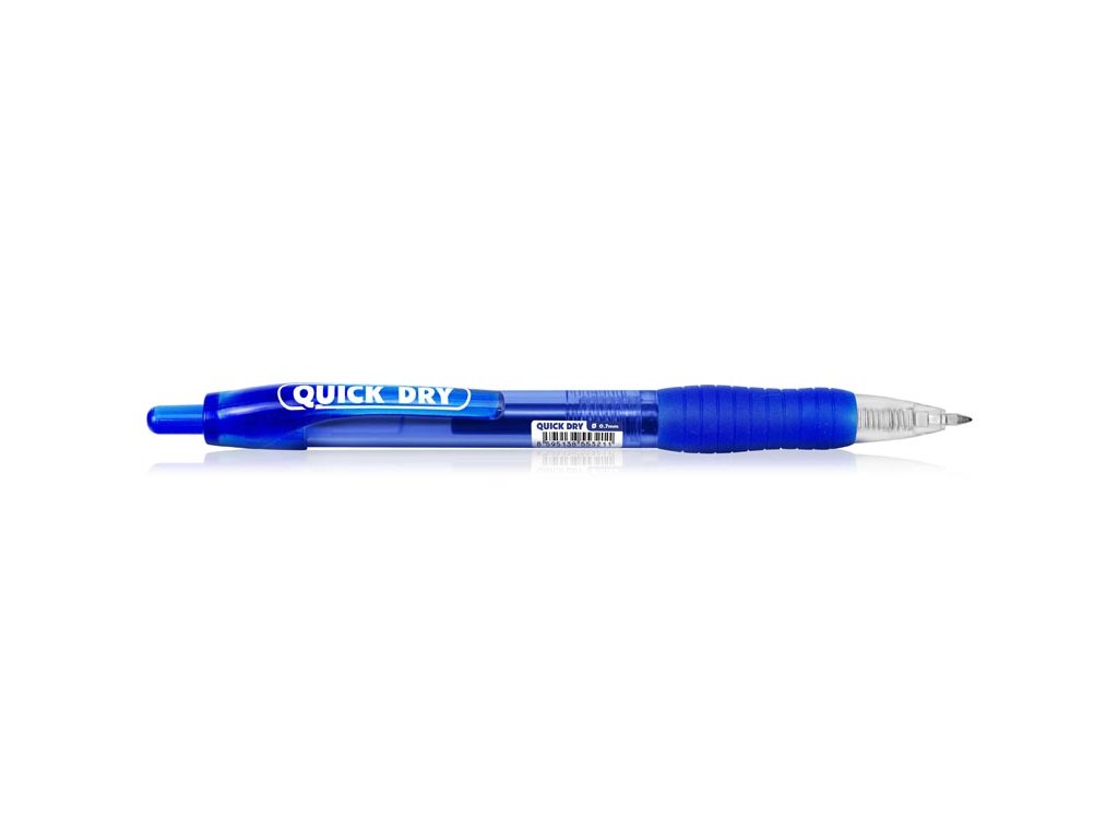 Rychleschnoucí, gelové, cvakací pero (modrá náplň). Toto gelové pero je určeno i pro leváky. Určeno pro školáky, kanceláře i domácnosti.- obsahuje rychleschnoucí inkoust