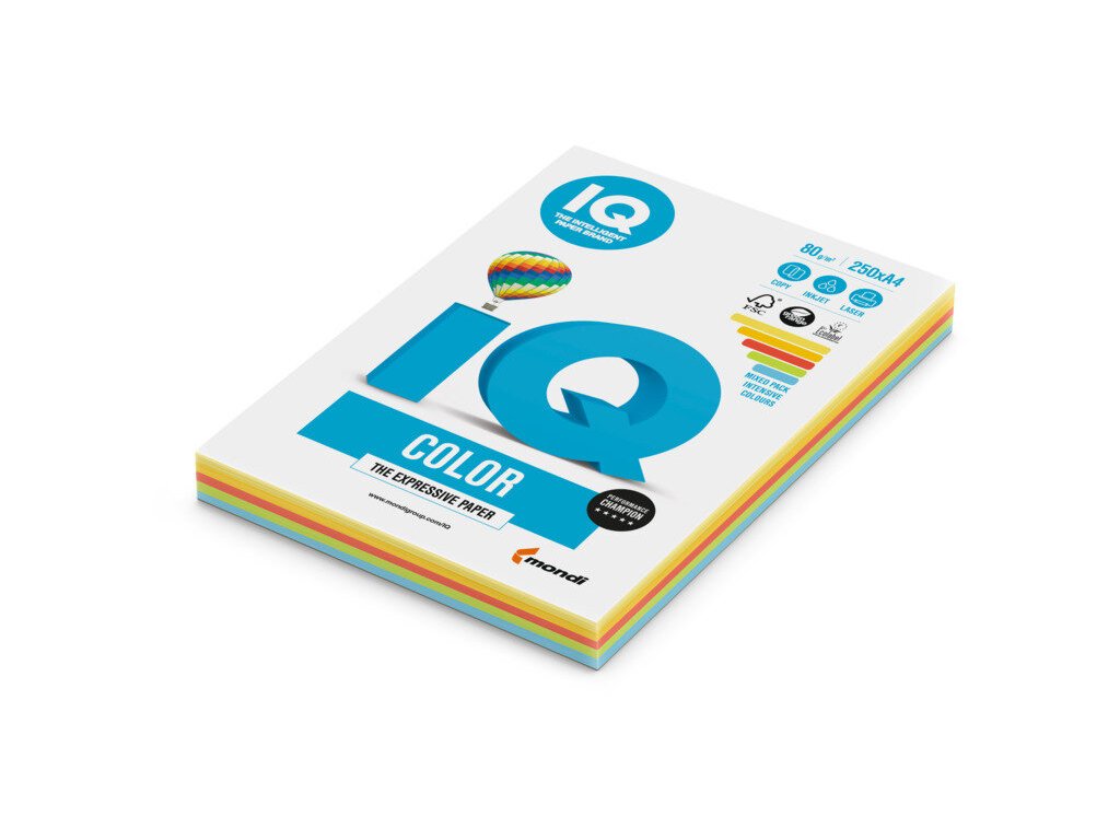 Kolekce barevných papírů IQ COLOR poskytuje jedinečné využití pro každý den. K dispozici máte 29 úžasných barev, jejichž prostřednictvím dosáhnete originálních efektů. Barvy jsou rozdělenyna pastelové, intenzivní, trendové a neonové. Jedině IQ COLOR v sobě kombinuje vlastnosti špičkových papírů s estetickými nároky. Výborně se hodí pro použití v kopírovacích strojích, laserových i inkoustových tiskárnách. Papíry vynikají vysokou barevnou stálostí, která zaručuje perfektní výsledky. Jednotlivé balíčky jsou baleny v transparentním balení, které současně umožňuje opakované otevírání a uzavírání.