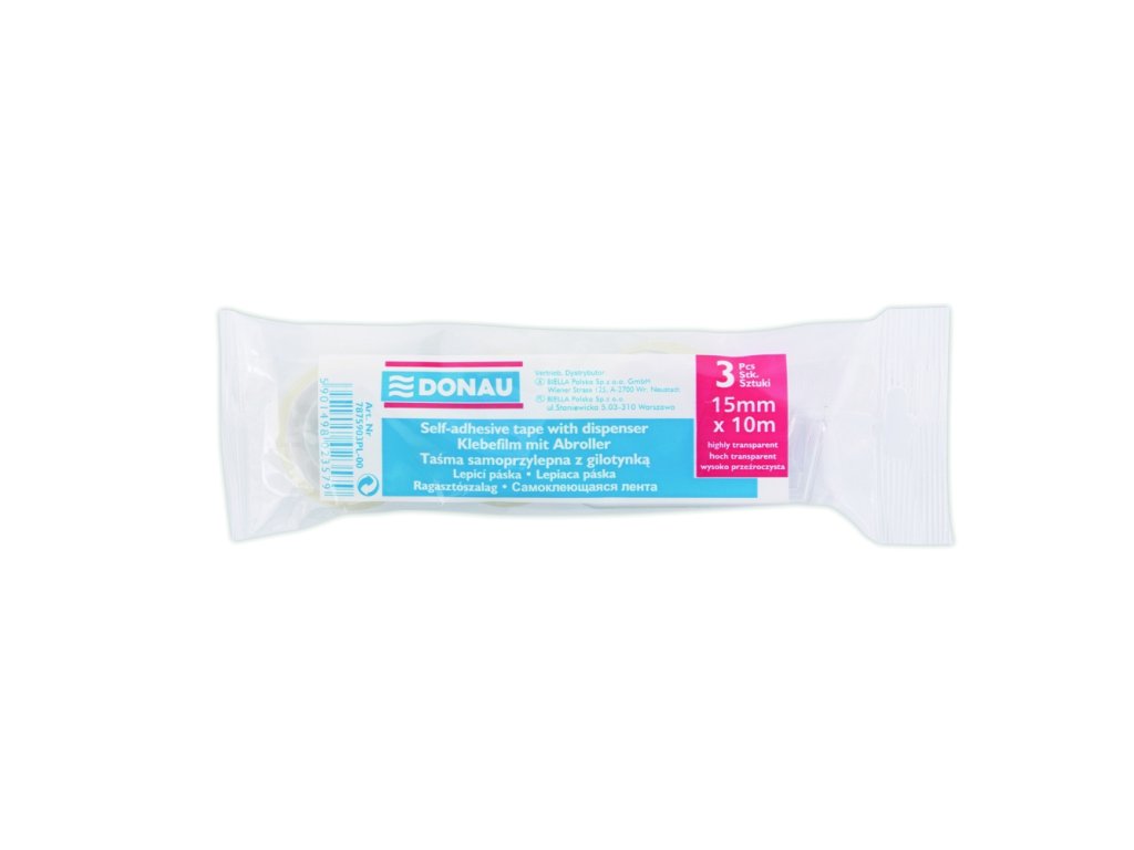 Páska kancelářská s odvíječem 15 mm x 10 m [3 ks] transparentní