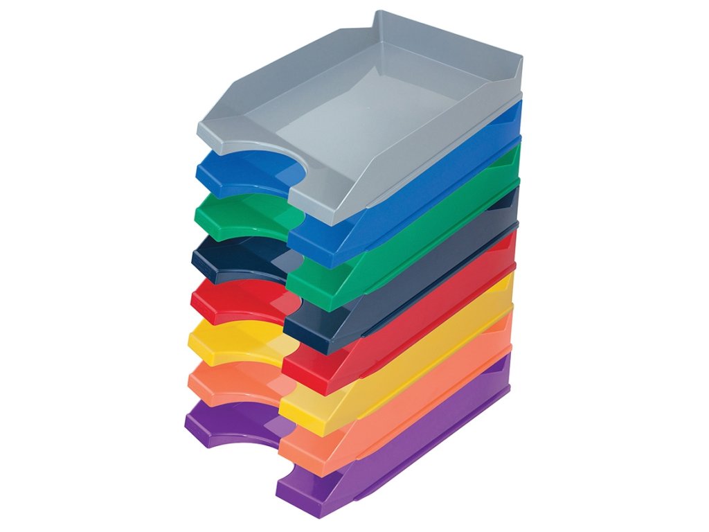 Pevný kancelářský odkladač určený pro organizaci dokumentů. Odkladače mohou být snadno vrstveny na sebe svisle nebo kaskádovitě do několika pozic pomocí praktických zarážek na spodní straně. Plocha na čele pro umístění popisu.pro formát A4