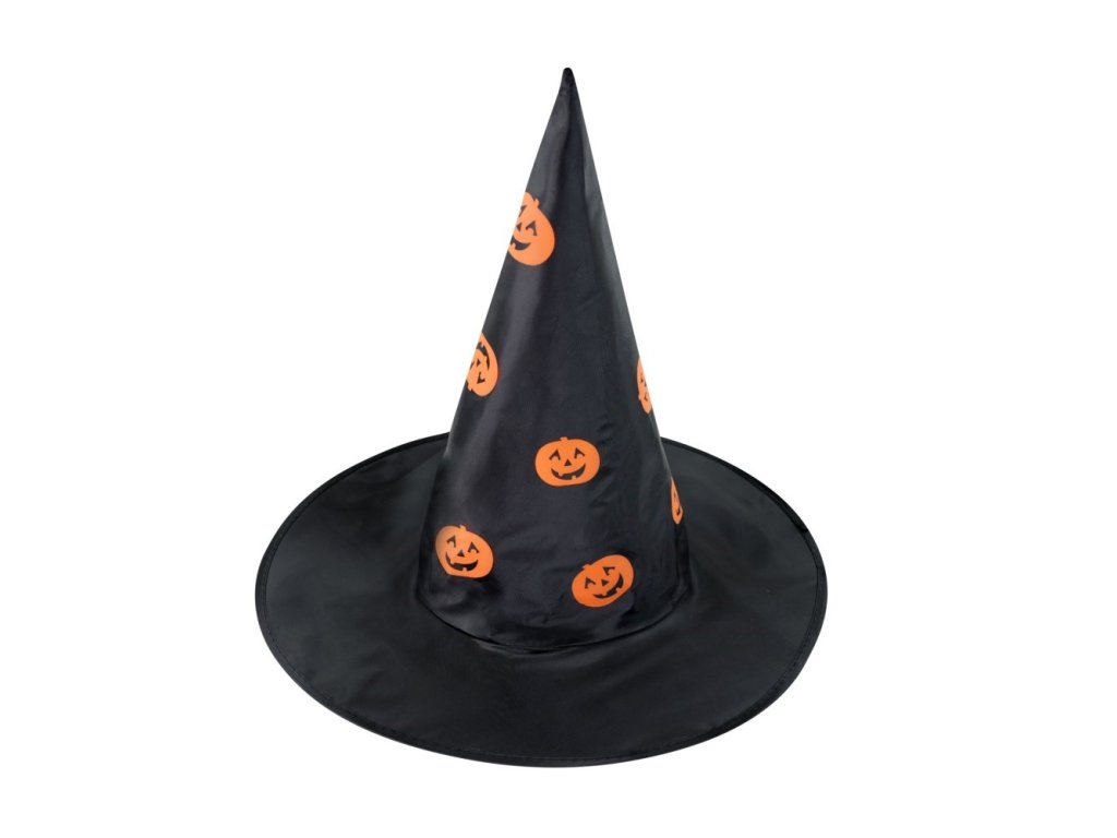 Úžasný čarodějnický klobouk v černé barvě s potiskem oranžových dýní. Ideální na halloweenský večírek nebo karneval!Rozměry 380 × 340 × 380 mm (balení)