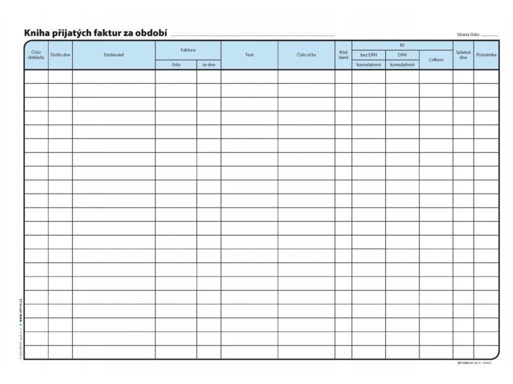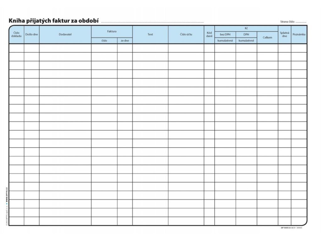 Kniha přijatých faktur A4