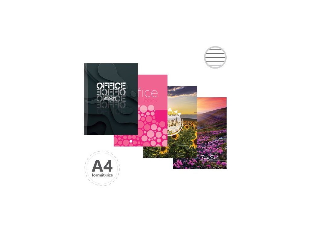 Záznamové knihy jsou vyrobené z bezdřevného psacího papíru. Obálka je vyrobená z tvrdého kartónu, který je potištěný různými barevnými motivmi a potažený laminem.Rozměry 210x297x15mm