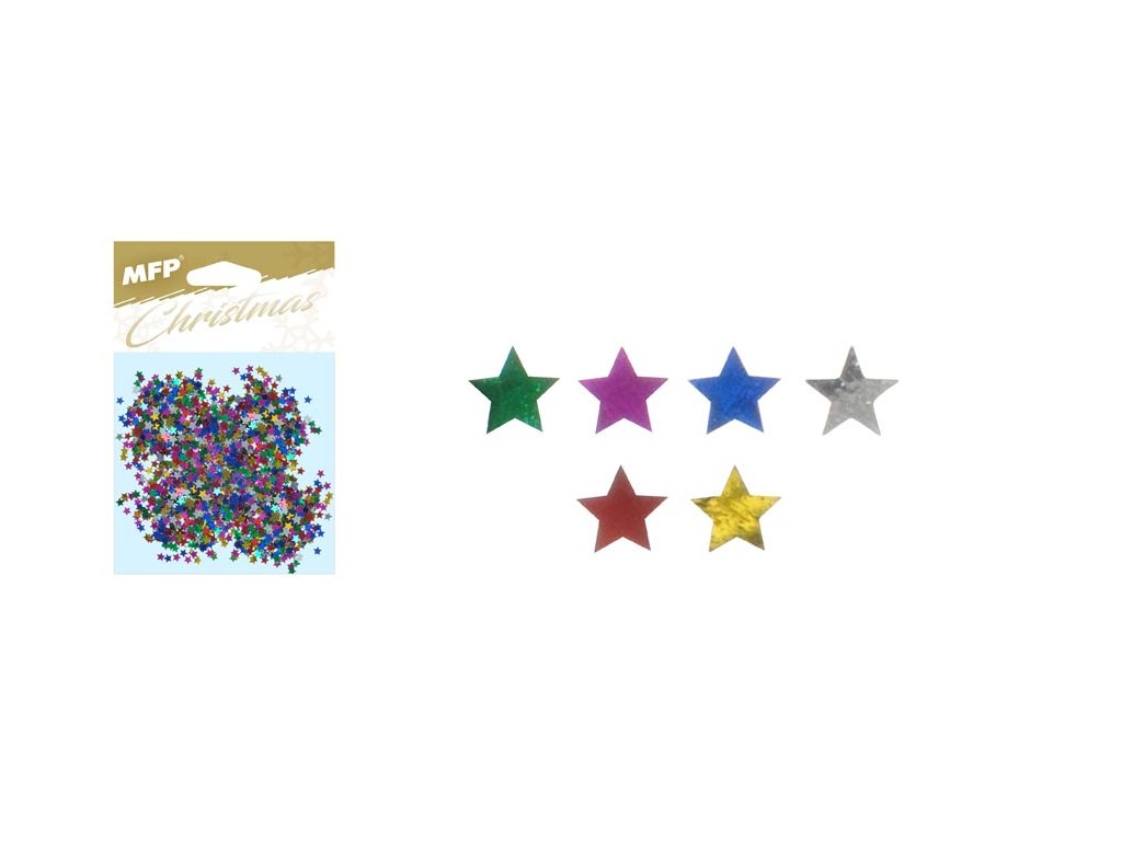Konfety hvězdičky. Vhodné pro výzdobu místnosti, stolů, pro výrobu vánočních dekorací aj.Hmotnost: 20 g
