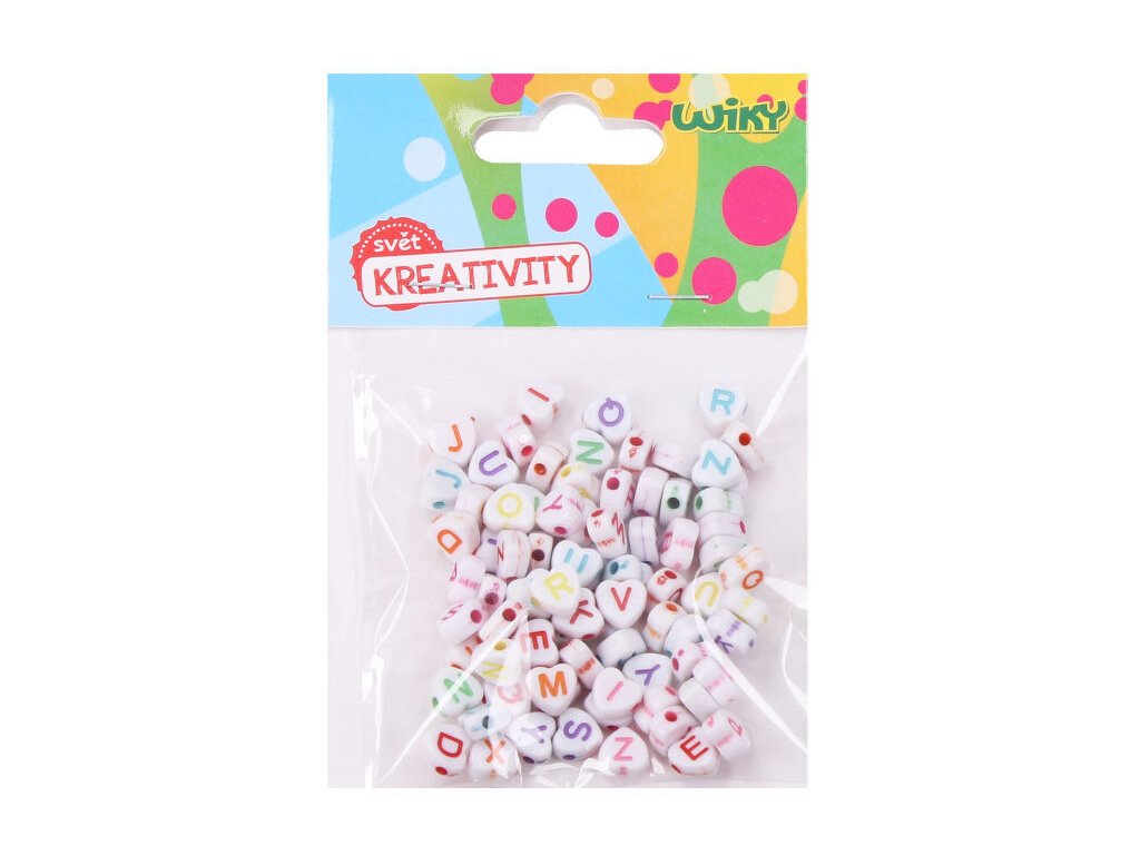 Barevné korálky vhodné k navlékání s písmenky, balení obsahuje 12 g UPOZORNĚNÍ: Není vhodné pro děti do 3 let. Obsah malých částí. Nebezpečí udušení. Používejte pod dozorem dospělé osoby.Doplňkové parametry