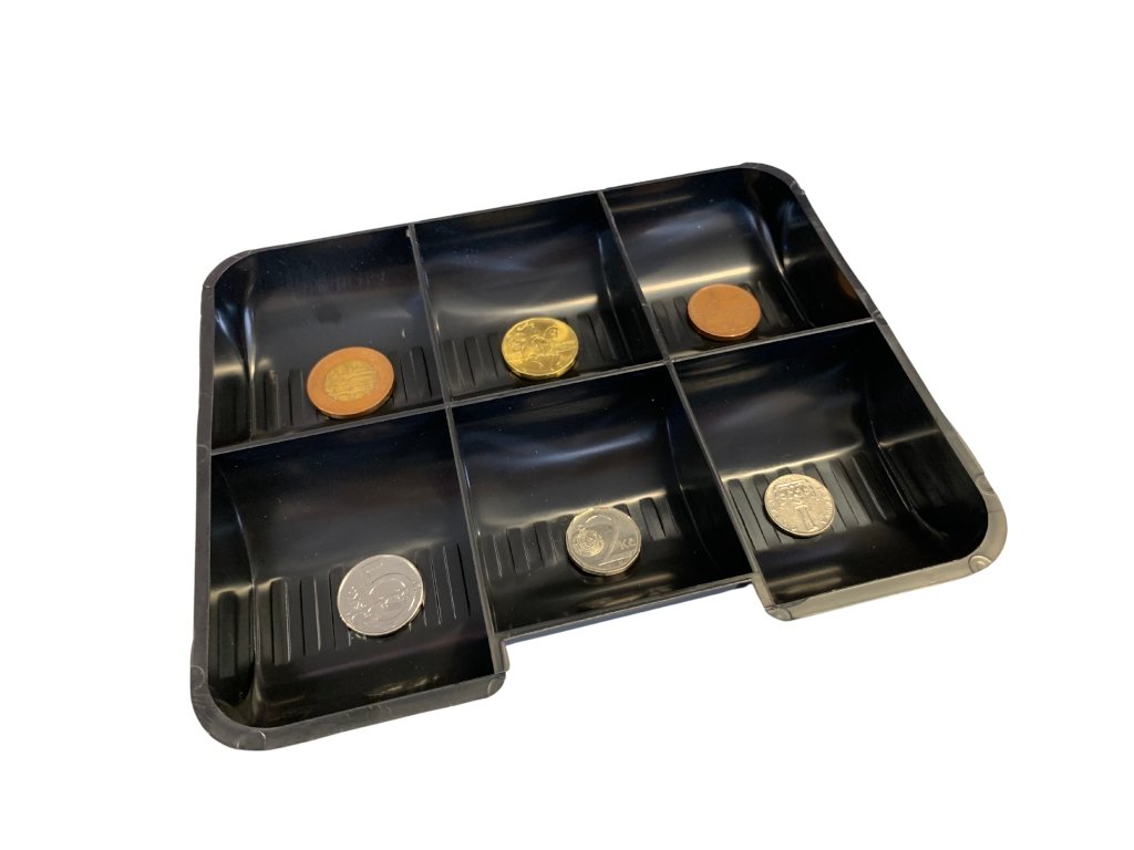 Kovová pokladna vyrobená z ocelového plechu. Obsahuje přihrádku na mince a volný prostor pro bankovky či dokumenty. Uzamykatelná a přenosná. O rozměru 200 x 160 x 90 mm.Doplňkové parametry