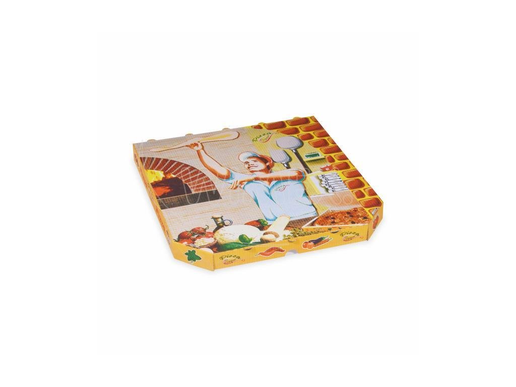 Krabice na pizzu (mikrovlnitá lepenka) E6 bílá s potiskem 32 x 32 x 3 cm [1 ks]Výška [cm]: 3,1