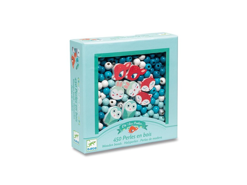 Kreativní sada 450 ks různých druhů dřevěných korálků a zvířátek, ze kterých je snadné navlékat originální šperky.Vhodné od 6 let.