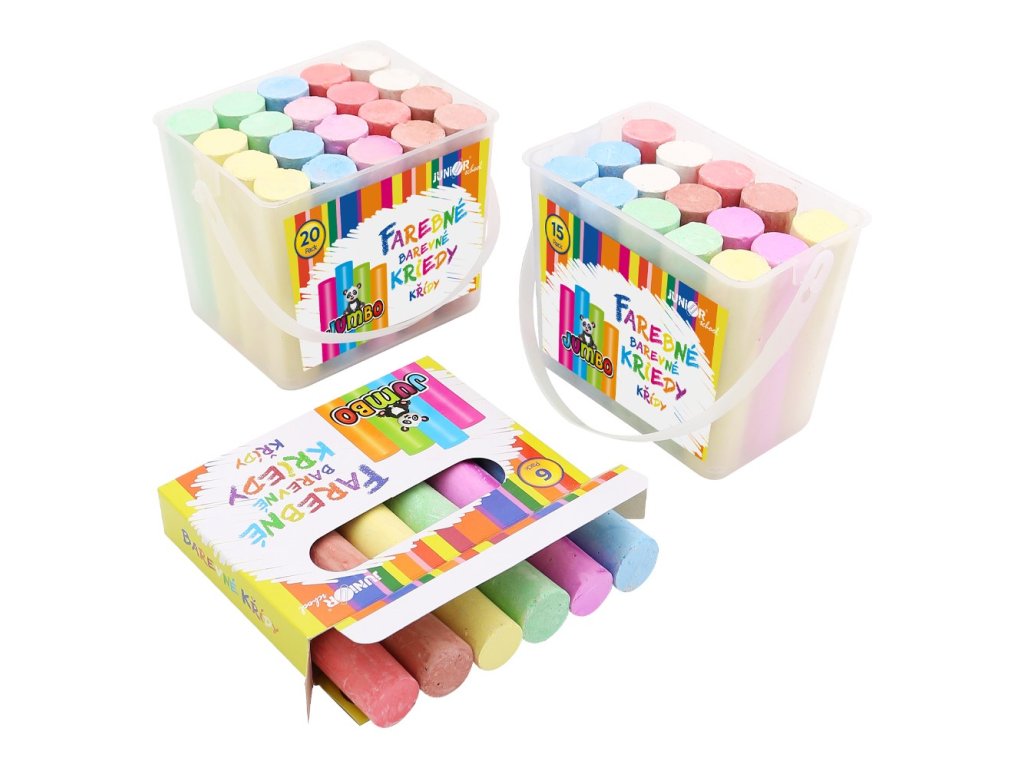 Křídy barevné/chodníkové, kulaté ks, rozměr 105 x 5 mm. V plastovém boxu 15 ks.Doplňkové parametry