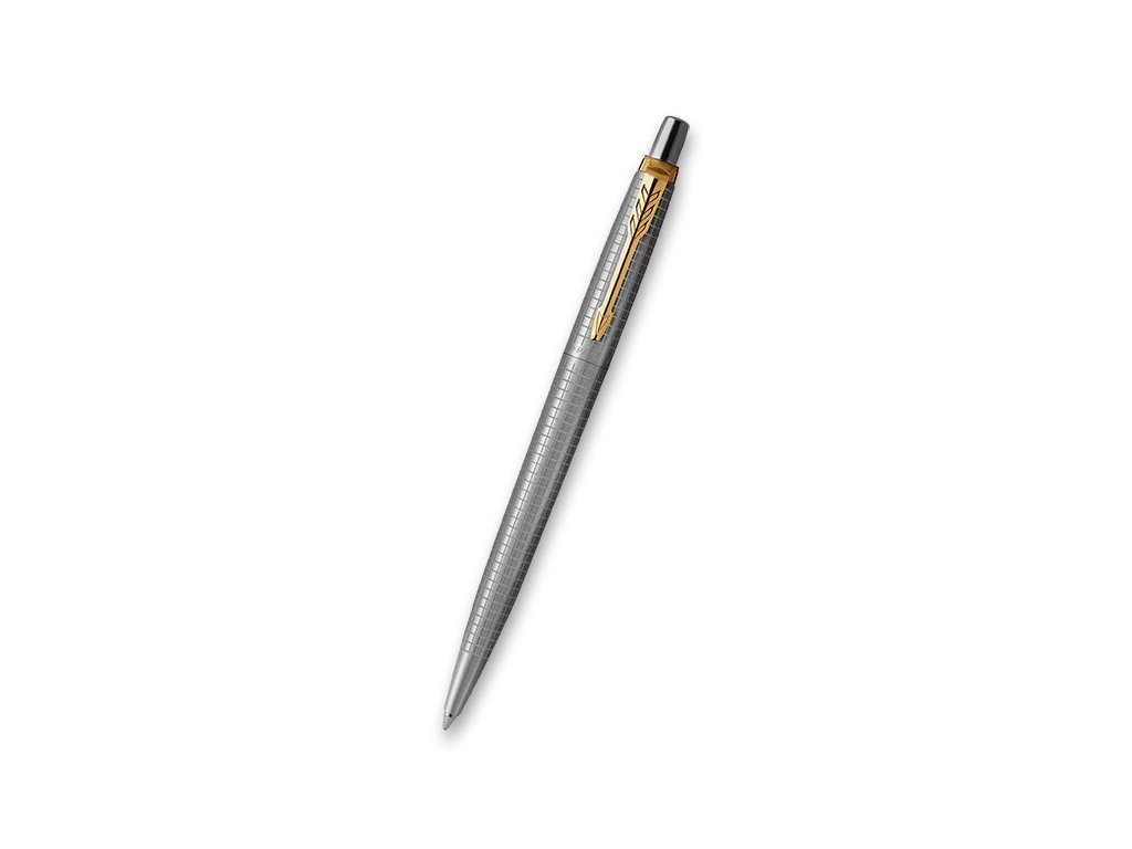 Kuličkové pero (propiska) Parker Jotter SE 70th Stainless Steel GT má tělo z broušené nerezové oceli ozdobené pomocí laseru ikonickým vzorem Ciselé. V kombinaci s klipem pokoveným zlatem, s leštěnou úpravou.Kuličkové pero:
